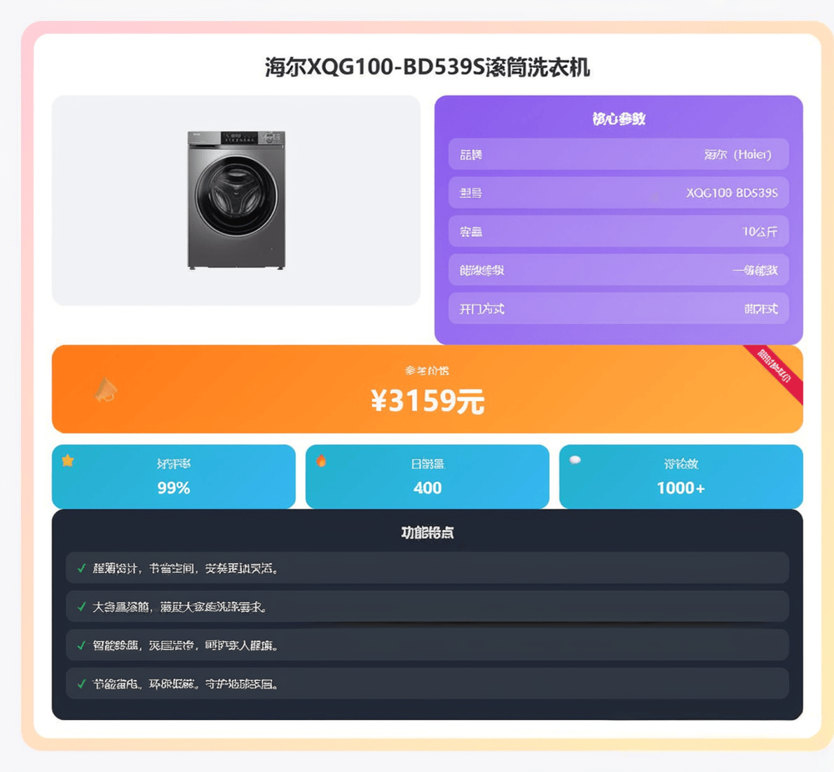 而对于大多数追求全面均衡、超高的性价比的家庭,第5款海尔XQG100-BD539S(3699元)是最务实、最不会出错的选择,它在健康除菌、智能功能和价格之间取得了最佳平衡。
