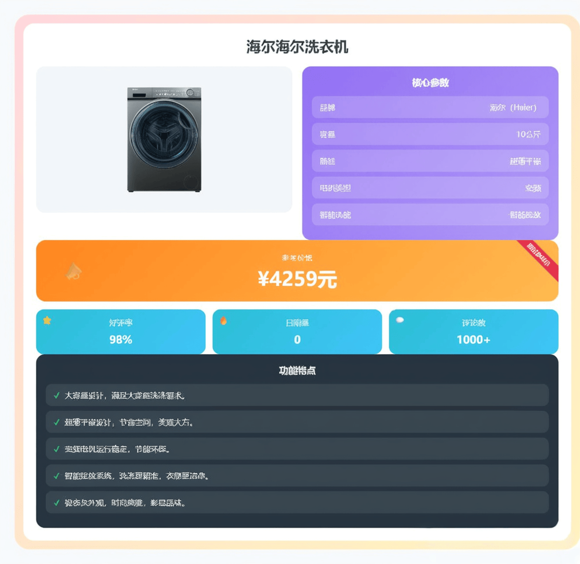 虽然这款洗衣机的名称比较笼统,但从4259元的价格来看,它很可能属于海尔的中高端系列,集成了更多特色功能。在这个价位,我们一般会看到海尔一些独家“黑科技”的下放。